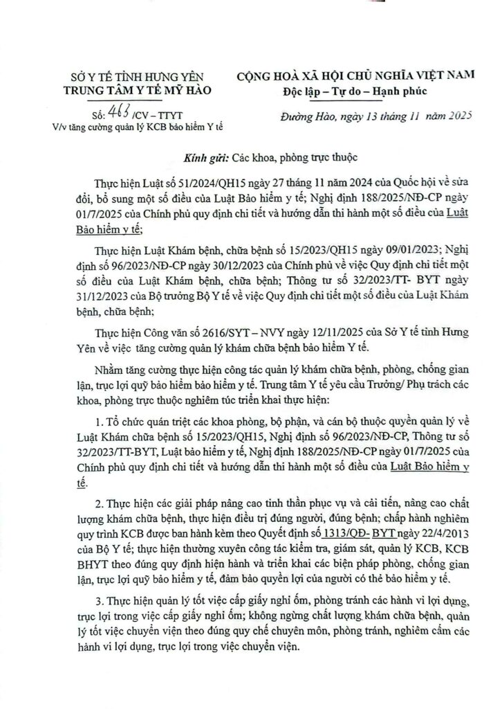 V/v tăng cường quản lý KCB bảo hiểm Y tế